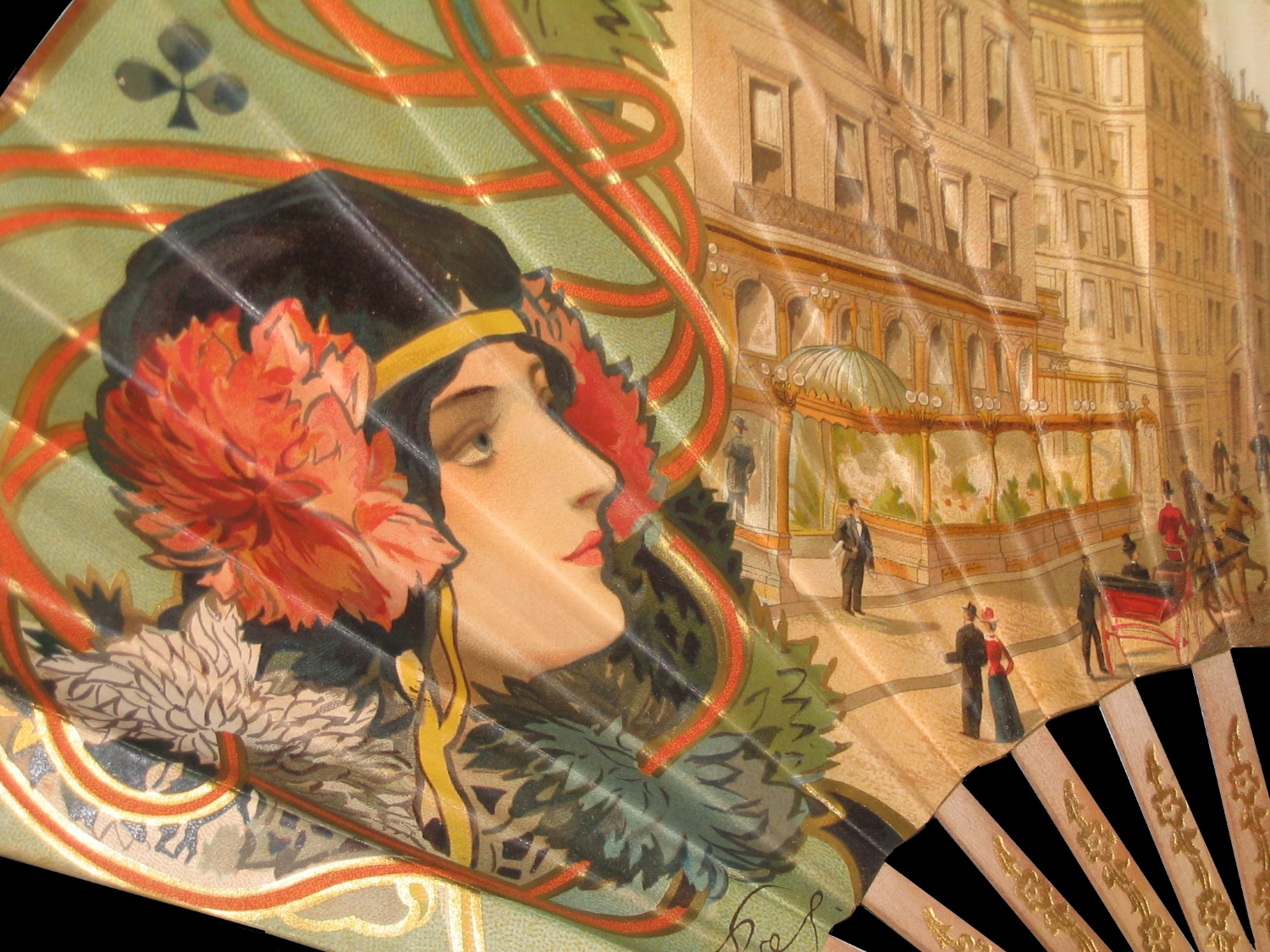 Dans la page en anglais jumelle de celle en français que vous êtes en train de lire, le terme "Art Nouveau" n'est pas traduit. Malgré la concurrence du Jugendstil, c'est en effet un terme international. Le Cambridge Dictionnary en donne d'ailleurs une excellente définition : "a style of art and decoration that uses curling lines and plant and flower shapes"  (un style d'art et de décoration qui utilise des lignes ondulées et des formes de plantes et de fleurs). Mais pourquoi cette page ? D'une part parce que ce site n'a guère abordé jusqu'à présent ce style pourtant important.  D'autre part, et surtout, parce que nous avons appris, grâce au Cercle de l'Eventail  qu'Anaïs Guillot, étudiante en Histoire de l'Art (Université Lumière Lyon 2),voulait consacrer son mémoire de Master à ce sujet. Bien que ce ne soit pas notre thème de prédilection nous avons, en bientôt un demi-siècle, accueilli un certain nombre d'objets pouvant se rapprocher de près ou de loin à la définition ci-dessus. Nous en avons donc fait part à cette étudiante. Il faut en effet encourager tous les jeunes gens qui s'intéressent aux éventails, en particulier quand ils veulents consacrer à cet objet des études sérieuses le sortant de l'image de futilité féminine que le XIXème siècle en a trop souvent donné, comme de celle d'objet touristique kitsch trop répandu au XXème siècle.