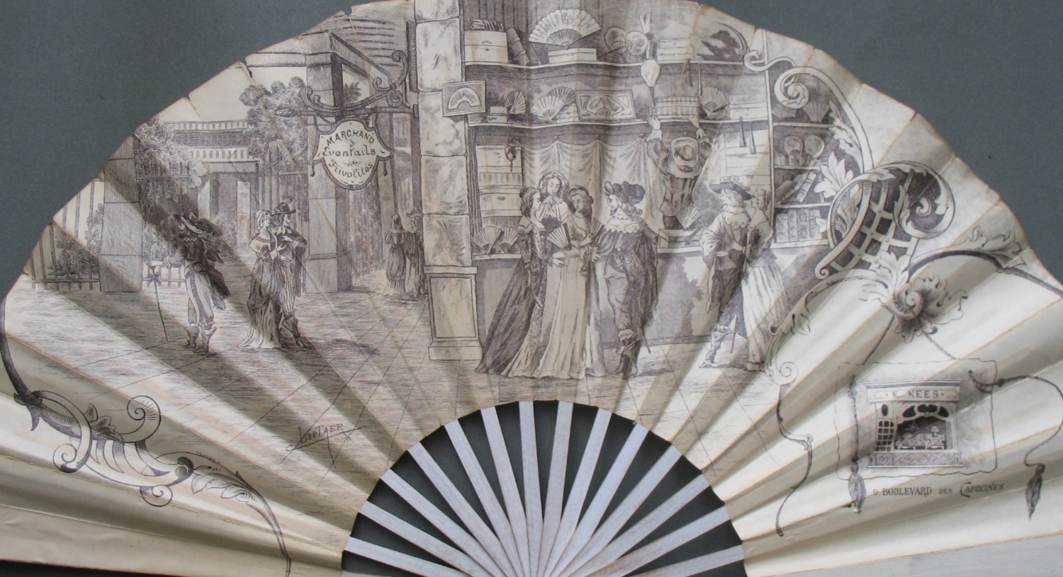 1900-1905.; Publicité pour l’éventailliste E. Kees, Lietaer, P. Beaudinot Gr. (d’après une célèbre estampe d’Abraham Bosse)
