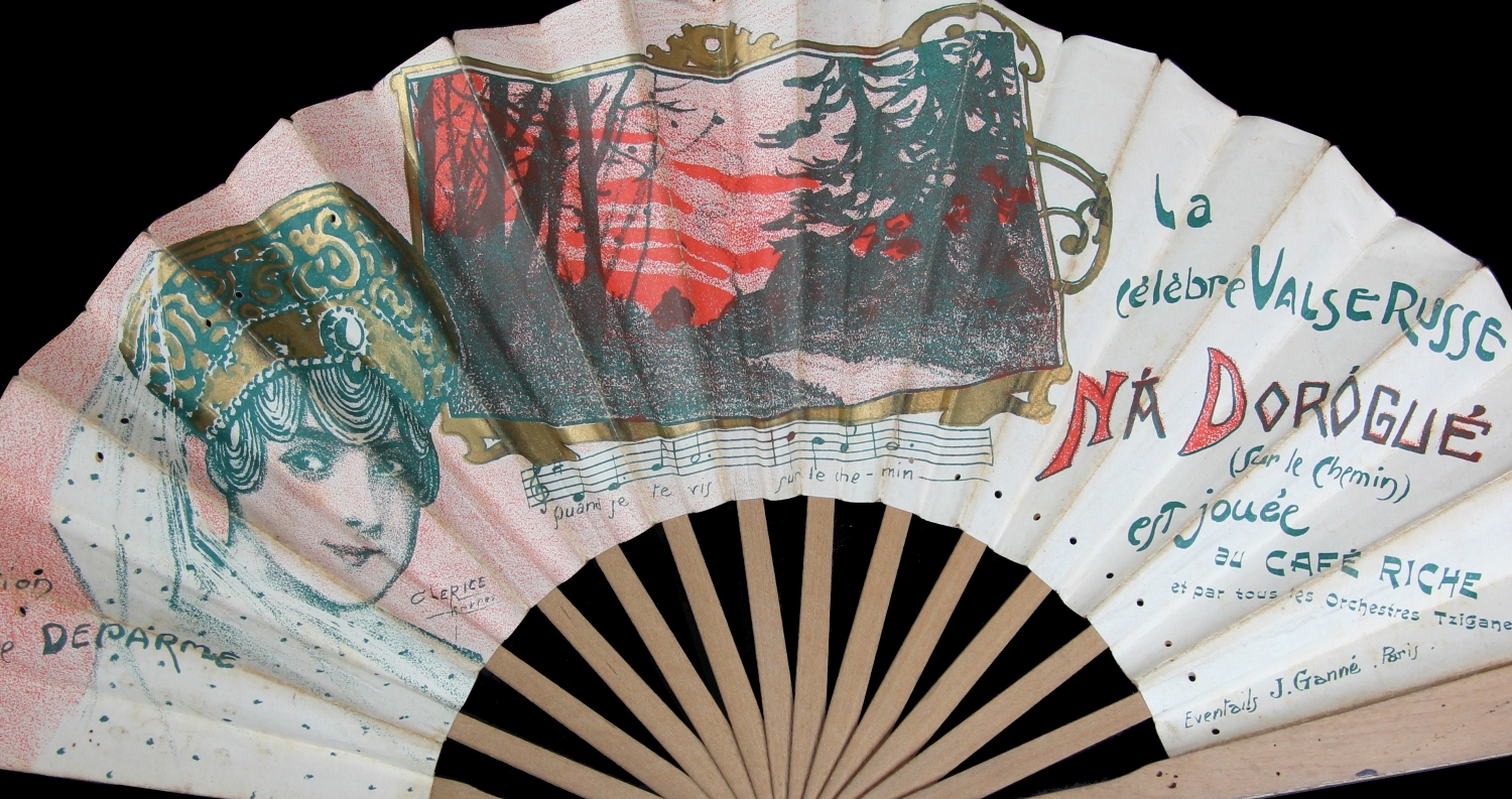 c. 1902 Publicité pour les établissements Royer (Grand Café du Point Central et autres)  Eventails J. Ganné – Paris.